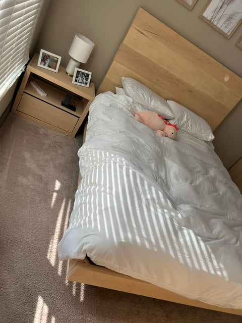 I couldn’t be happier with my new cherry queen bed. The craftsmanship is top-notch—solid cherry wood with a smooth finish that gives it a timeless, elegant look. It’s incredibly sturdy with no creaking or wobbling, even after weeks of use. The natural grain of the cherry adds warmth to my bedroom and makes the whole space feel more refined. Assembly was straightforward, and all the parts fit perfectly. This bed is clearly built to last, and it’s quickly become the centerpiece of my room. Highly recommend if you’re looking for quality and style in one!